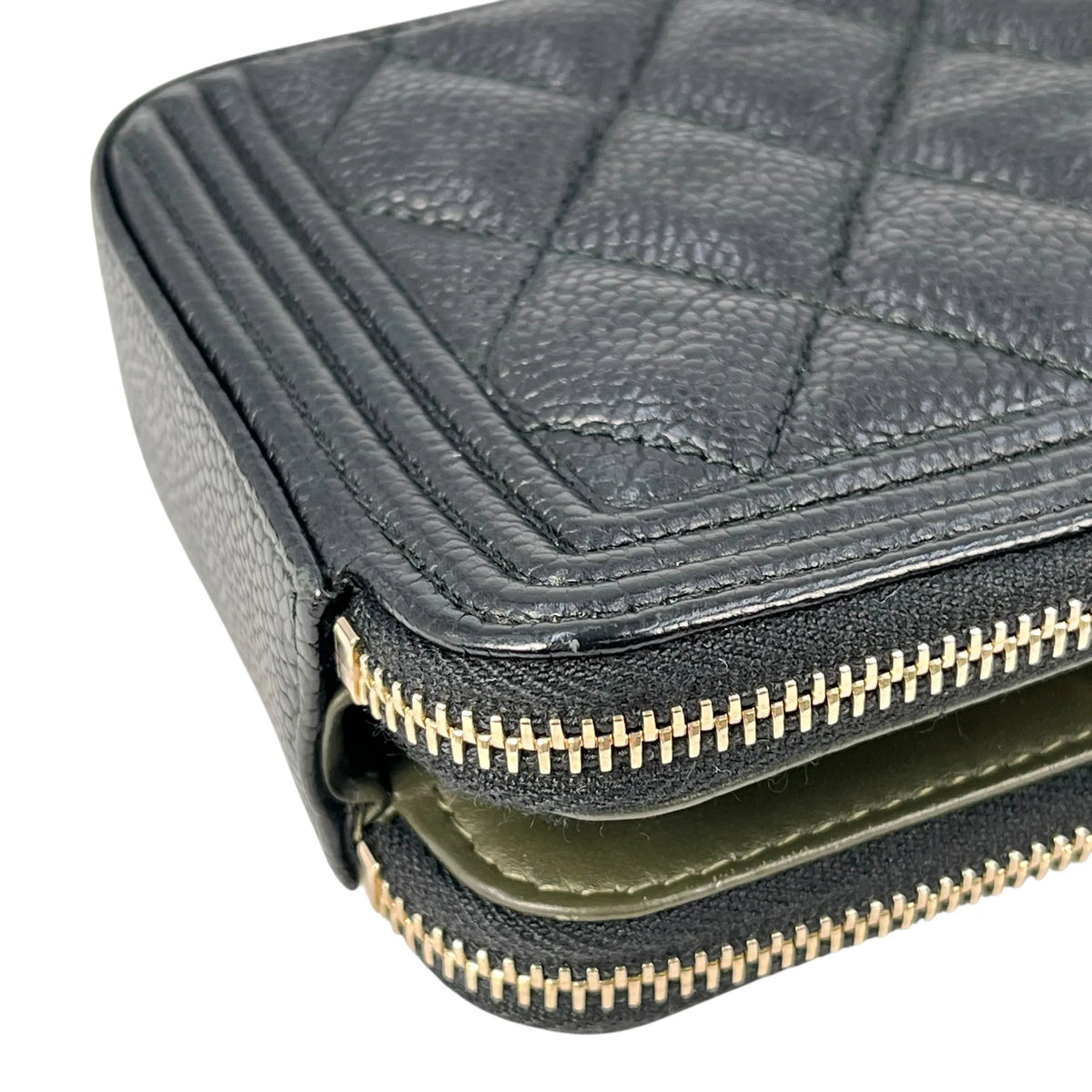 CHANEL Caviarskin Boy Double Zip Around Chain Wallet - Black