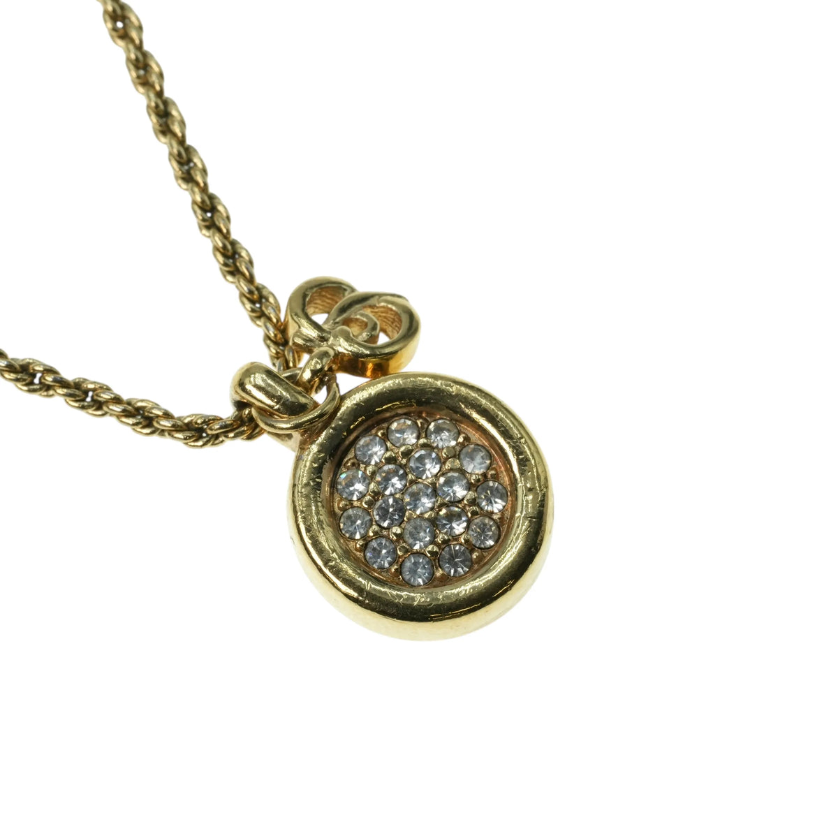 Dior Rhinestone Mini Logo Necklace - Gold Plated