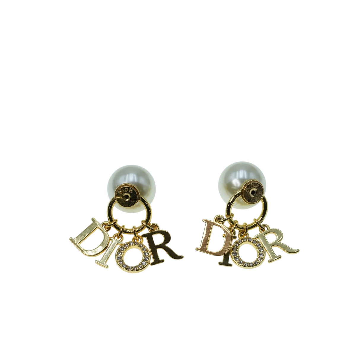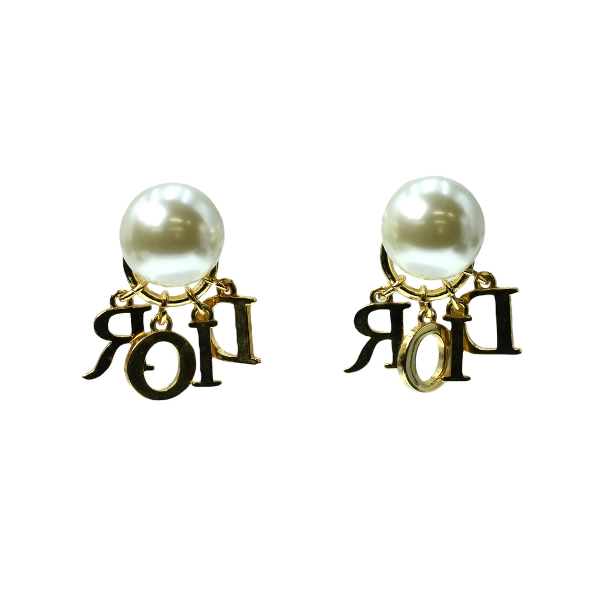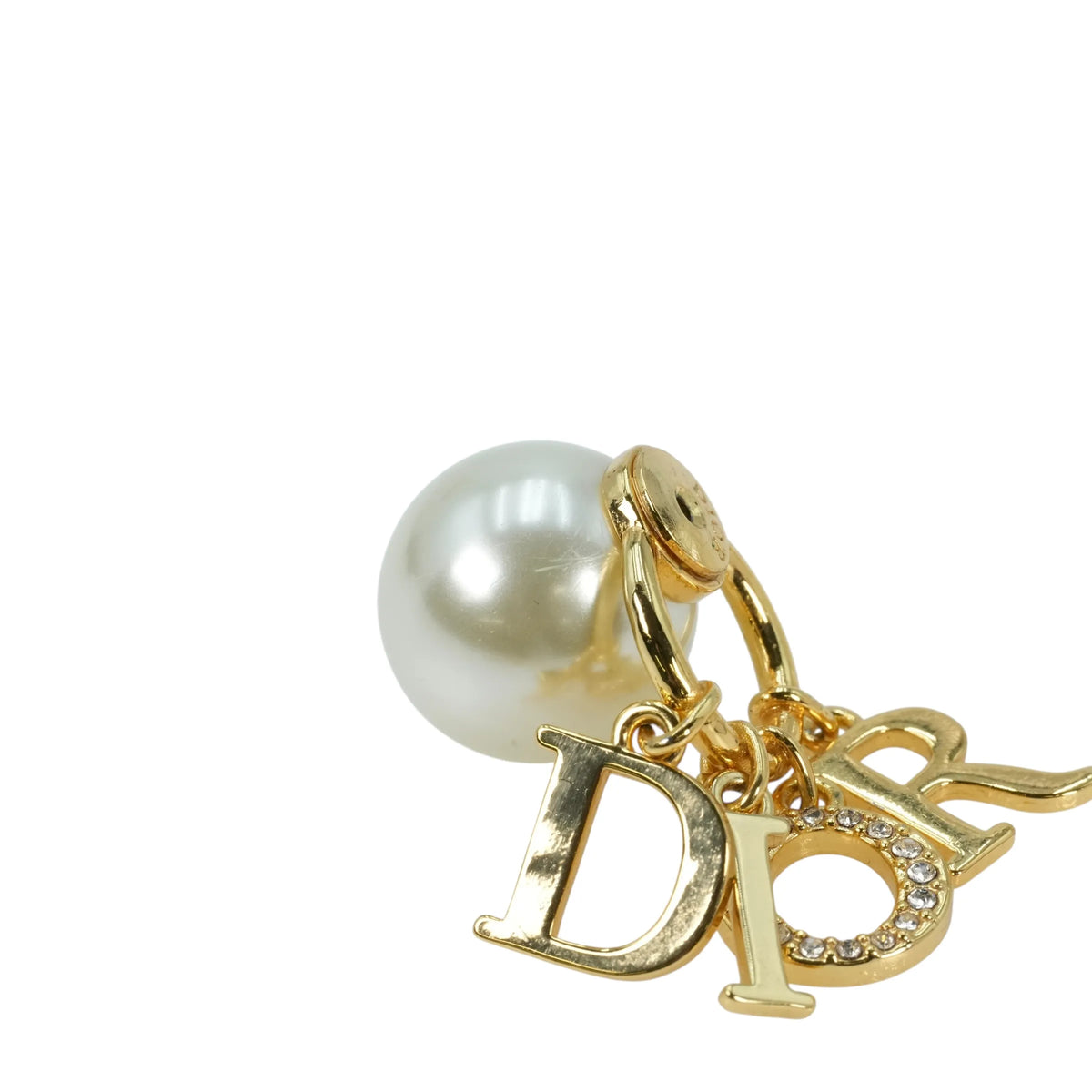 Dior Fake Pearl Rhinestone Tribal Earring - Gold Plated