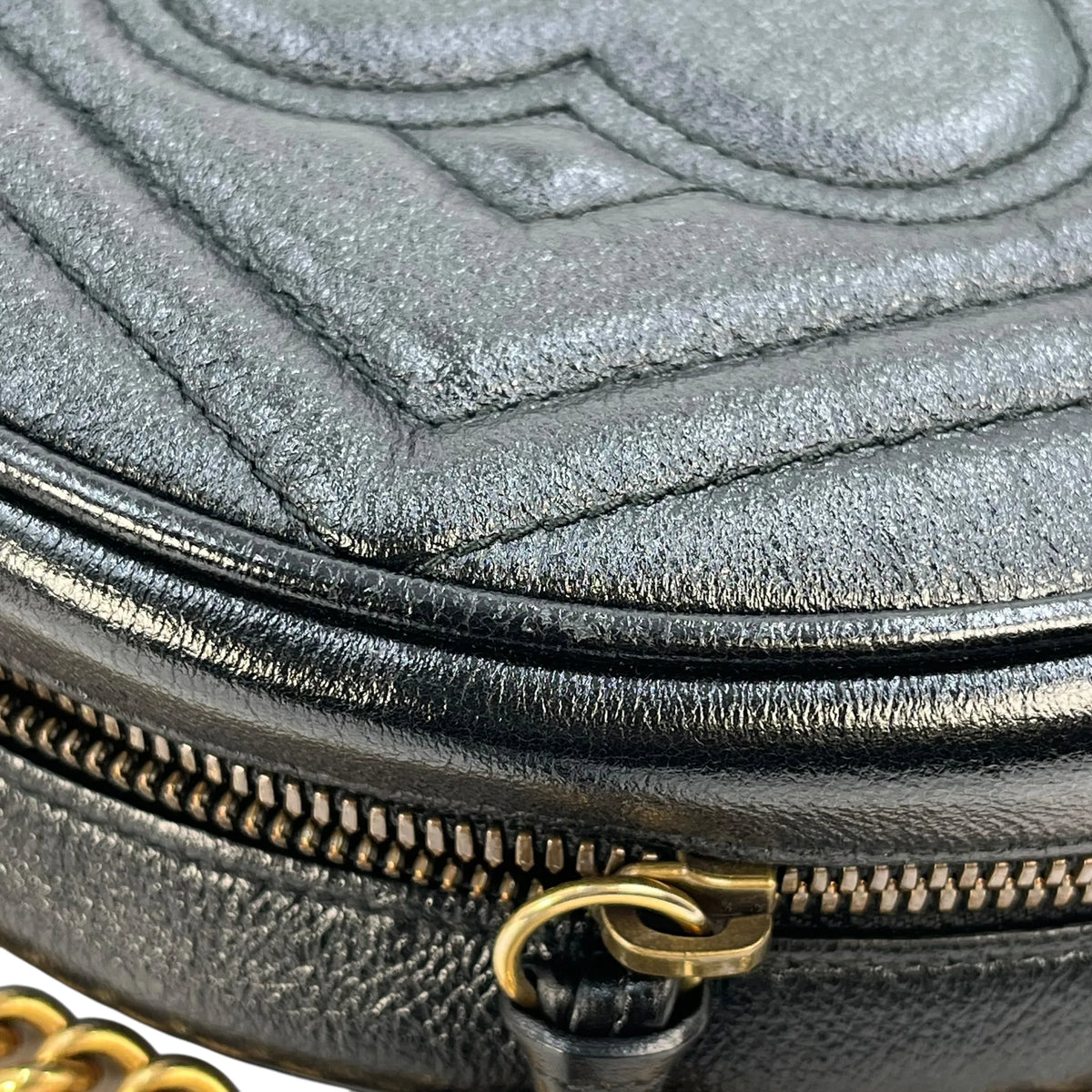 GUCCI GG Marmont Round Mini Chain Shoulder Bag - Black |