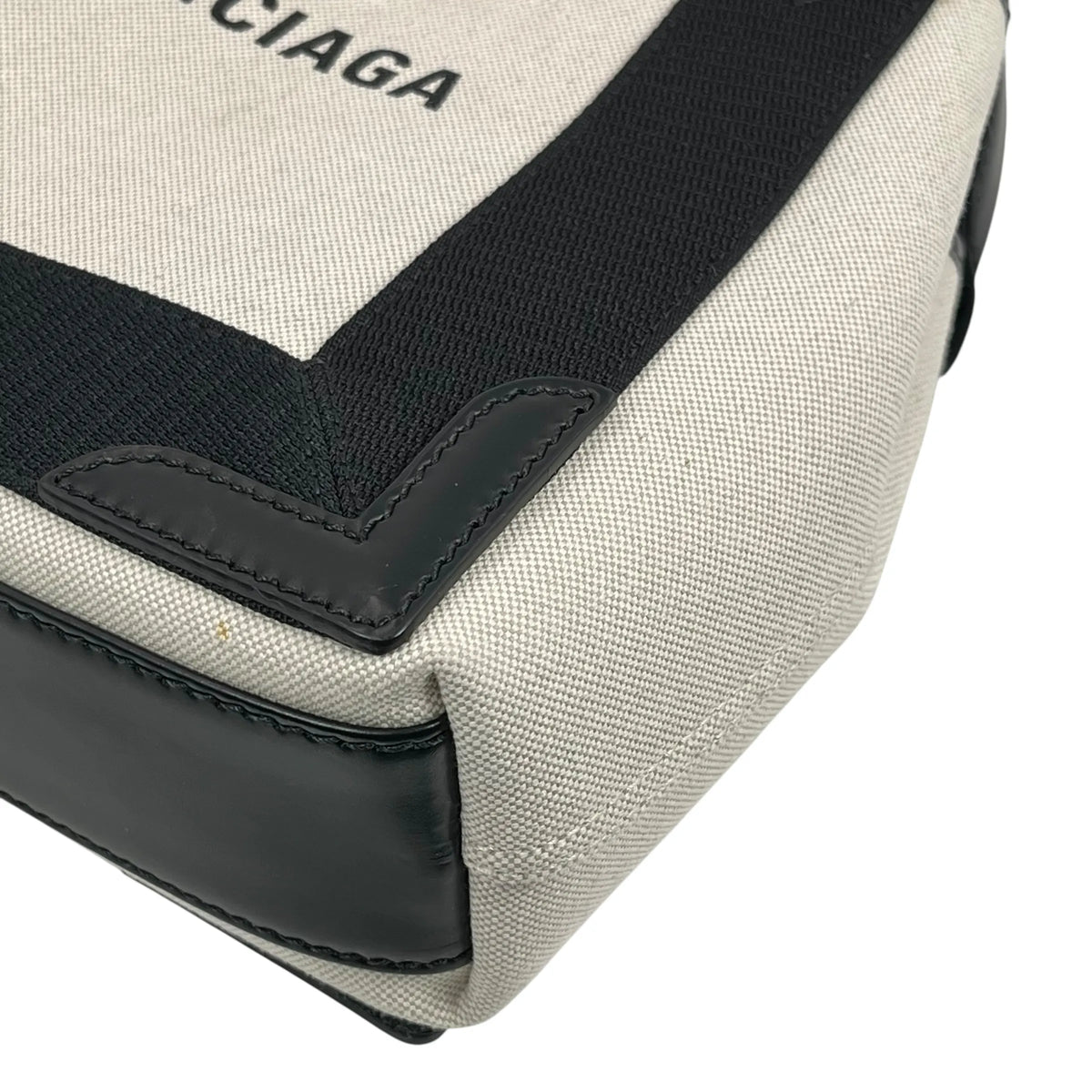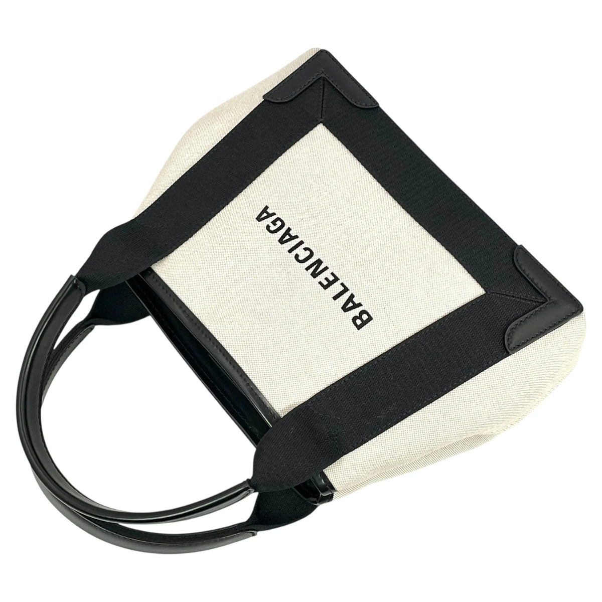 BALENCIAGA Navy Cabas XS Canvas Handbag/Shoulder Bag - White/Black