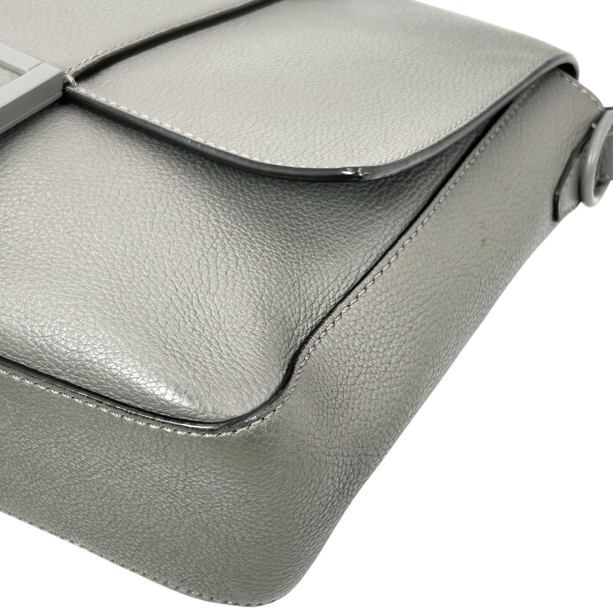 FENDI Baguette Messenger Bag Leather Shoulder Bag - Grey