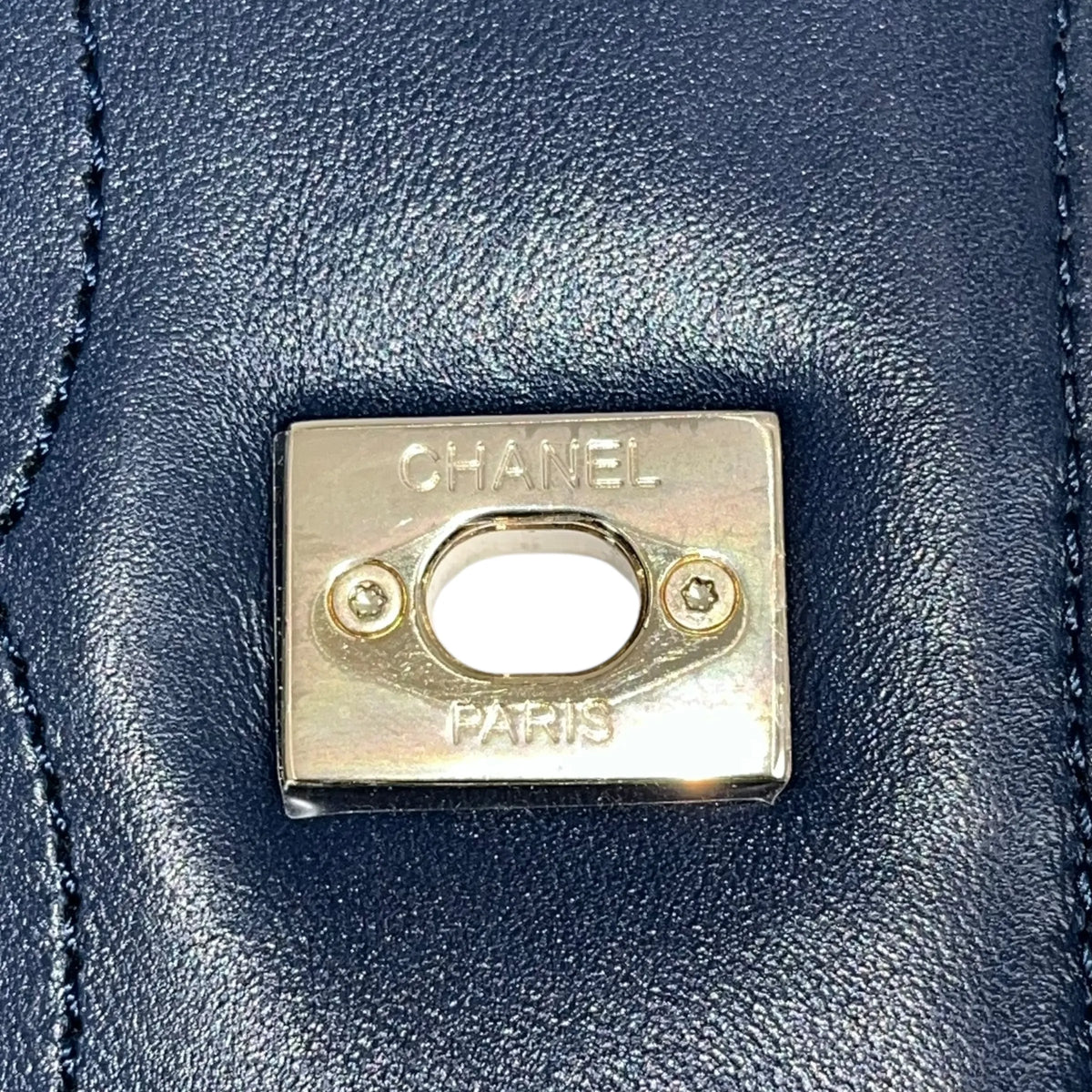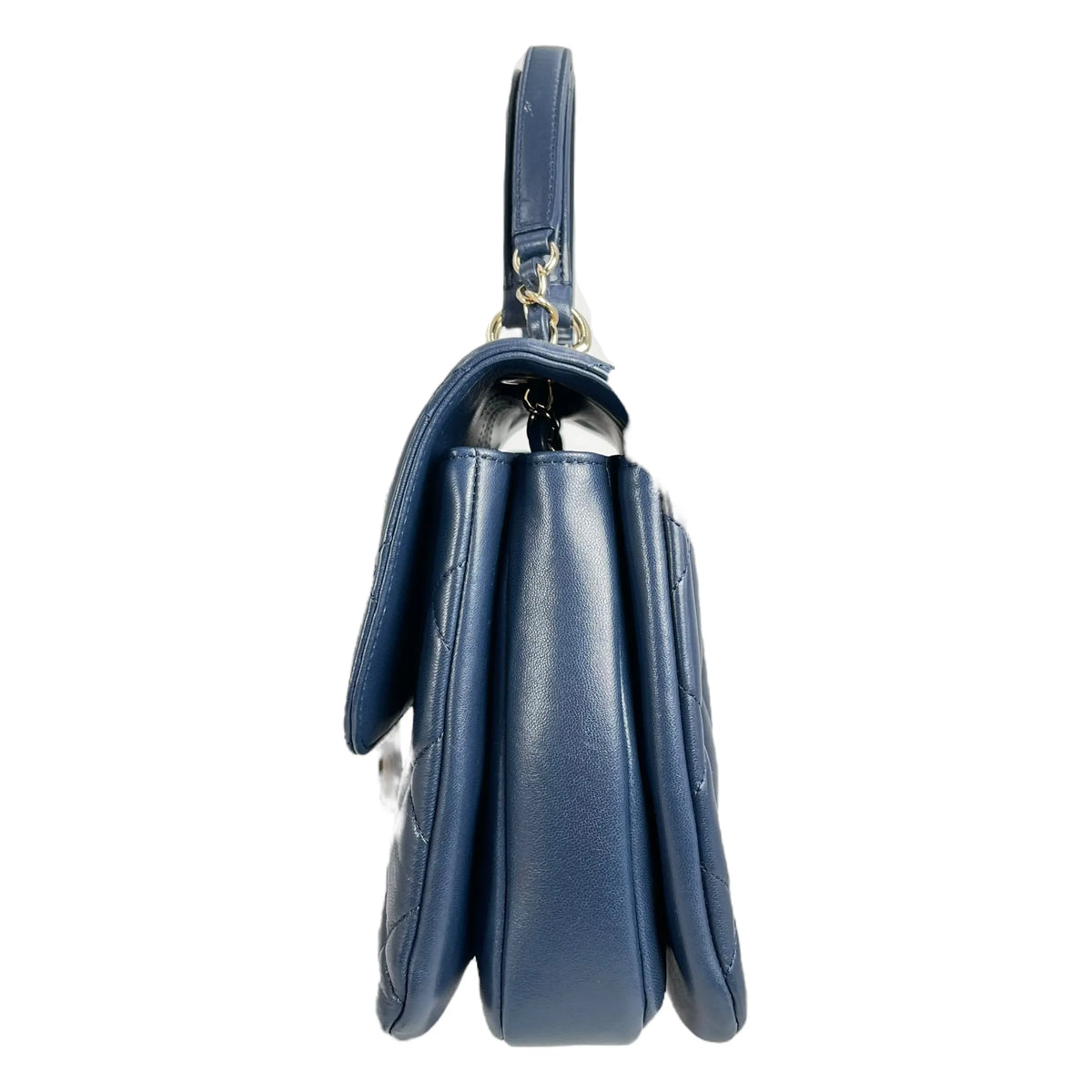 CHANEL Calfskin Matelassé Top Handle Trendy CC Handbag with Chain Shoulder Bag - Navy