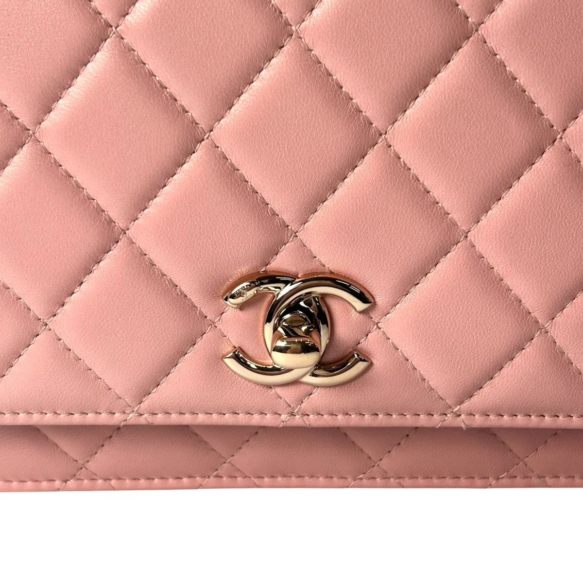 CHANEL Lambskin Chain Wallet - Baby Pink