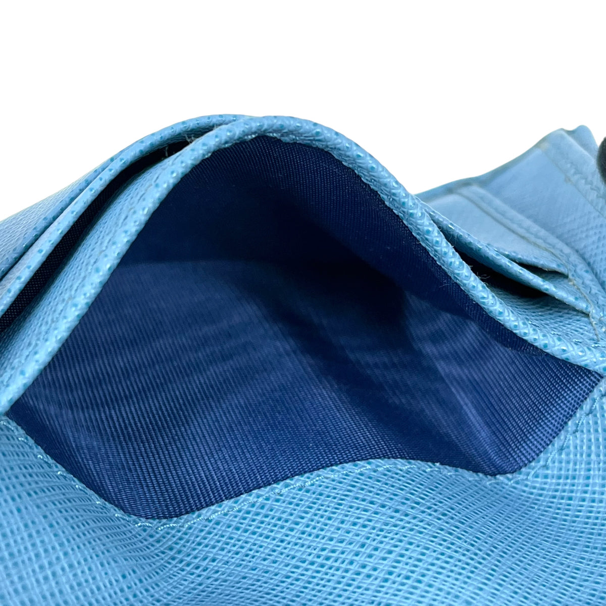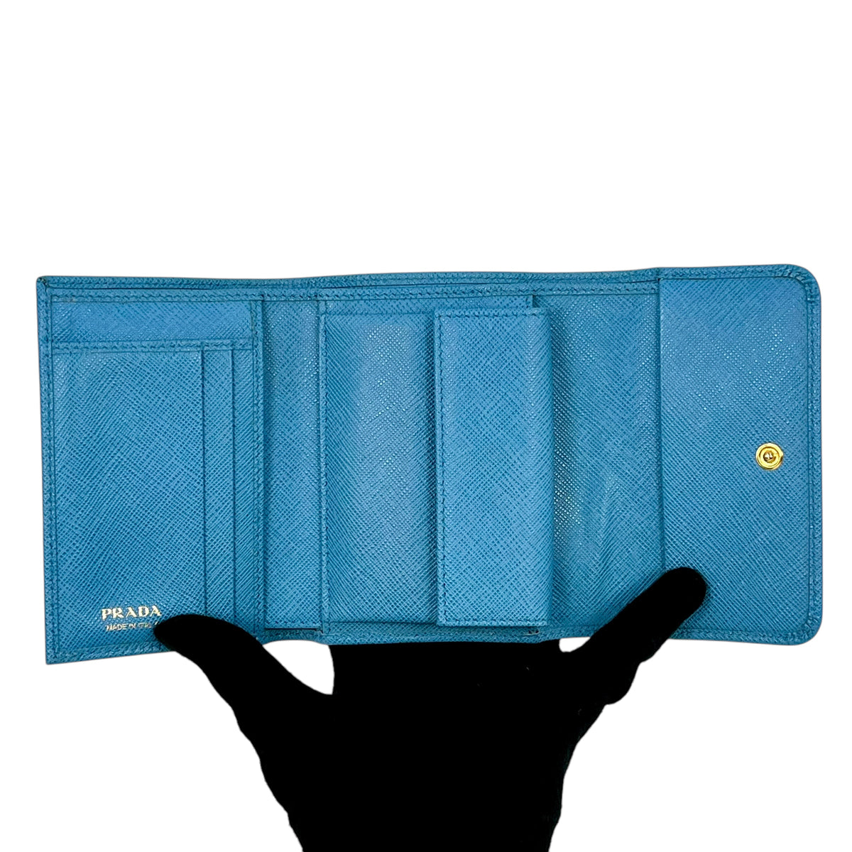 | Product name | PRADA Saffiano Ribbon Tri-fold Compact Wallet - Blue |