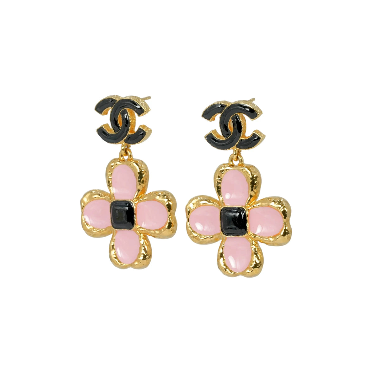 CHANEL Flower Motif Earrings L23K - Black and Pink - Metal