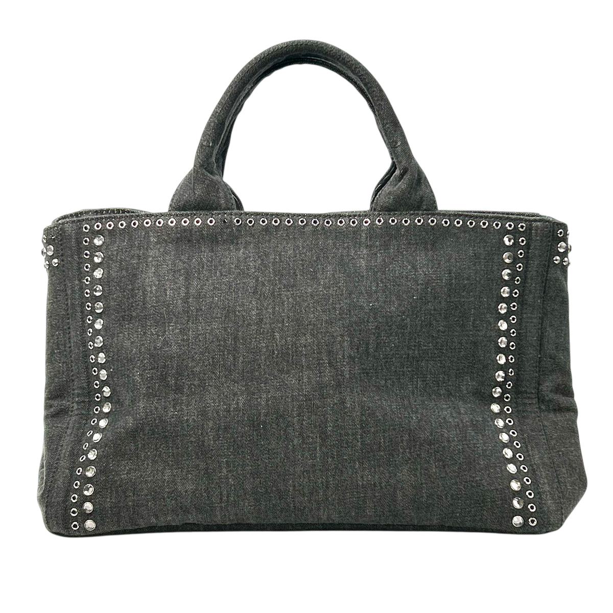PRADA Canapa Rhinestone Handbag - Charcoal Grey