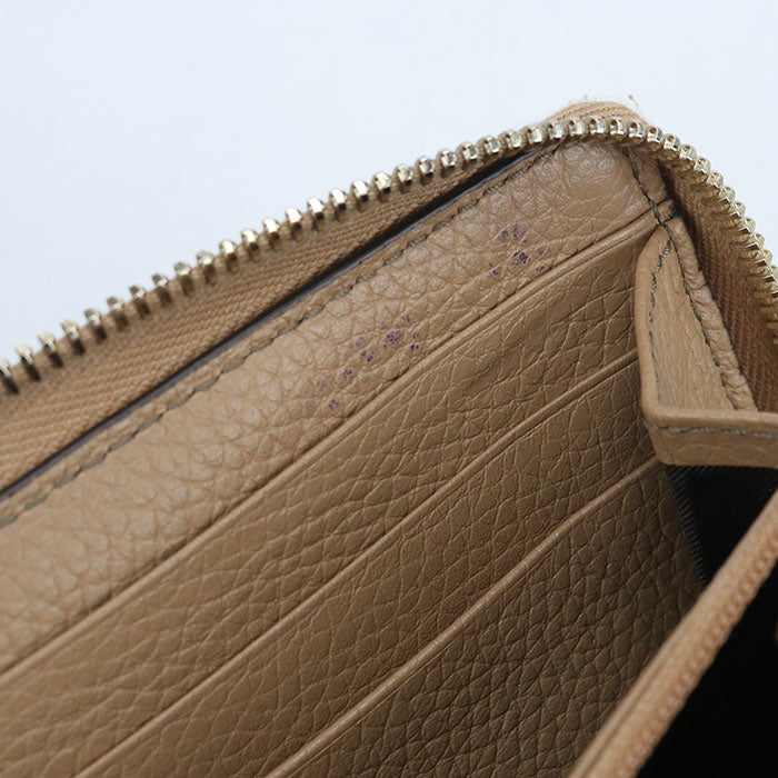 GUCCI Interlocking G Soho Zip-Around Grained Leather Long Wallet - Beige |