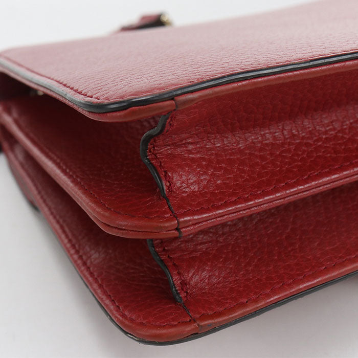 GUCCI インターロッキングG レザー チェーンショルダーバッグ - レッド