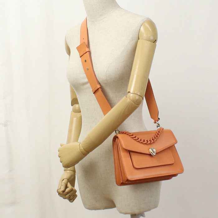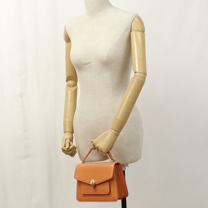 BVLGARI セルペンティフォーエバー レザー ハンドバッグ ショルダーバッグ - オレンジ