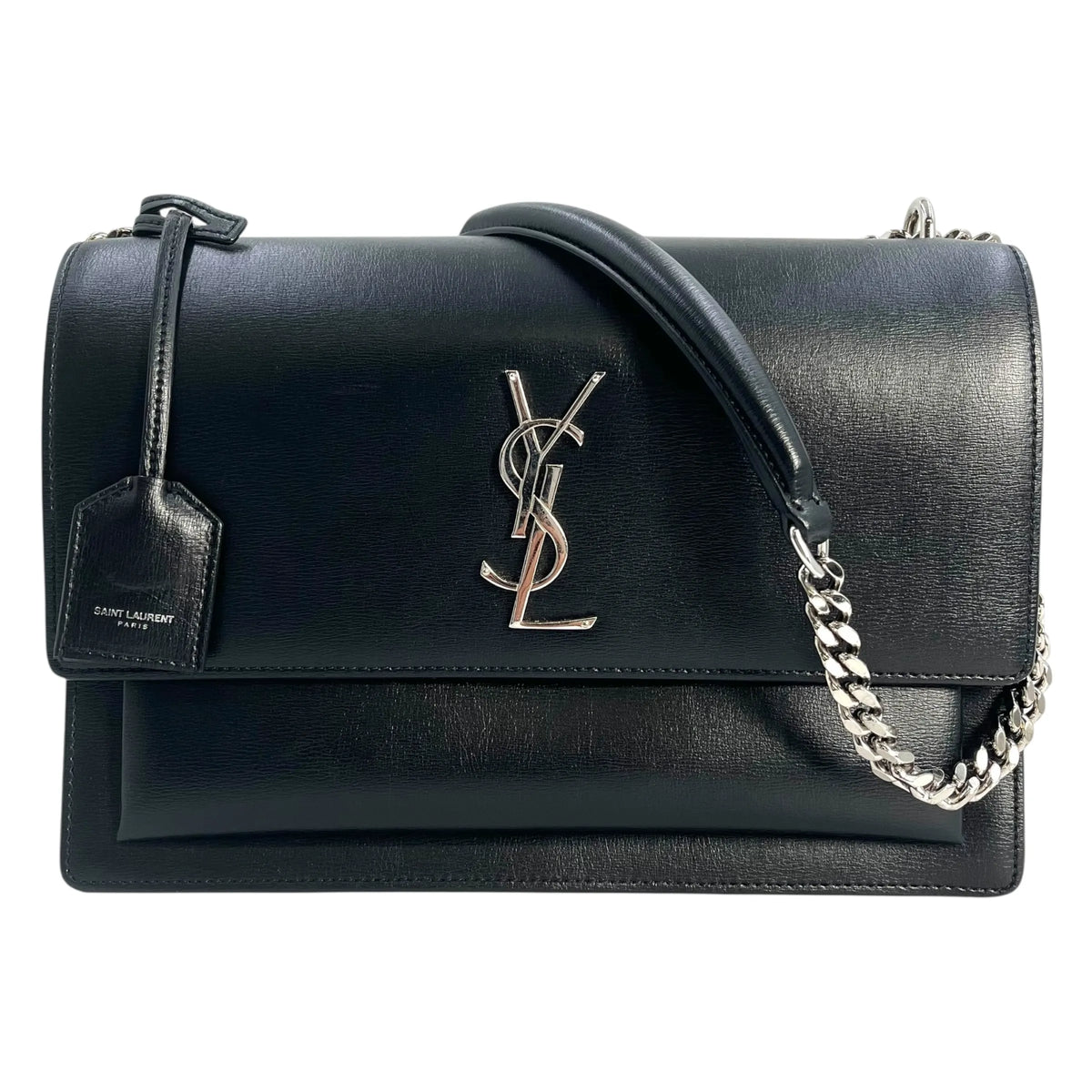 SAINT LAURENT サンセット ミディアム レザー チェーンショルダーバッグ - ブラック |