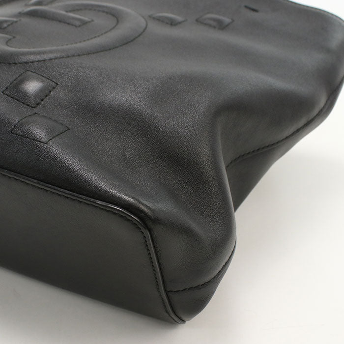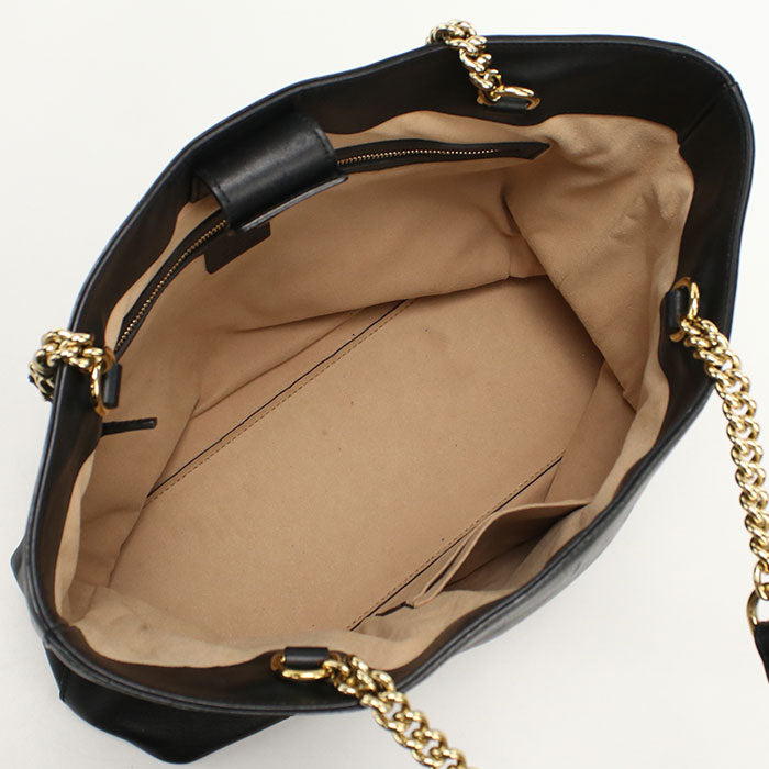 GUCCI GGエンボス カーフレザー チェーン トートバッグ - ブラック