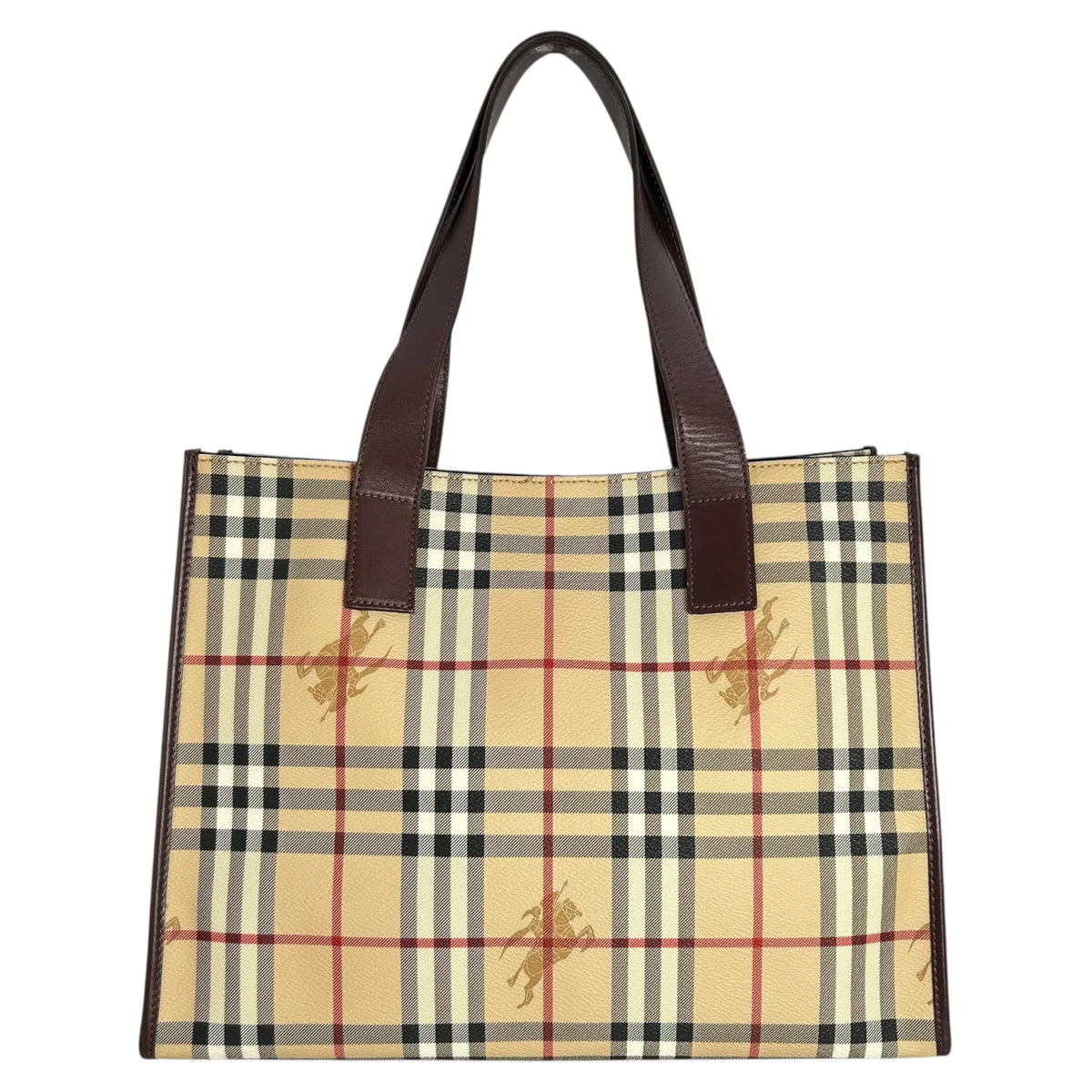 BURBERRY ノバ チェック シャドウホース PVC トートバッグ - ベージュ × ブラウン |