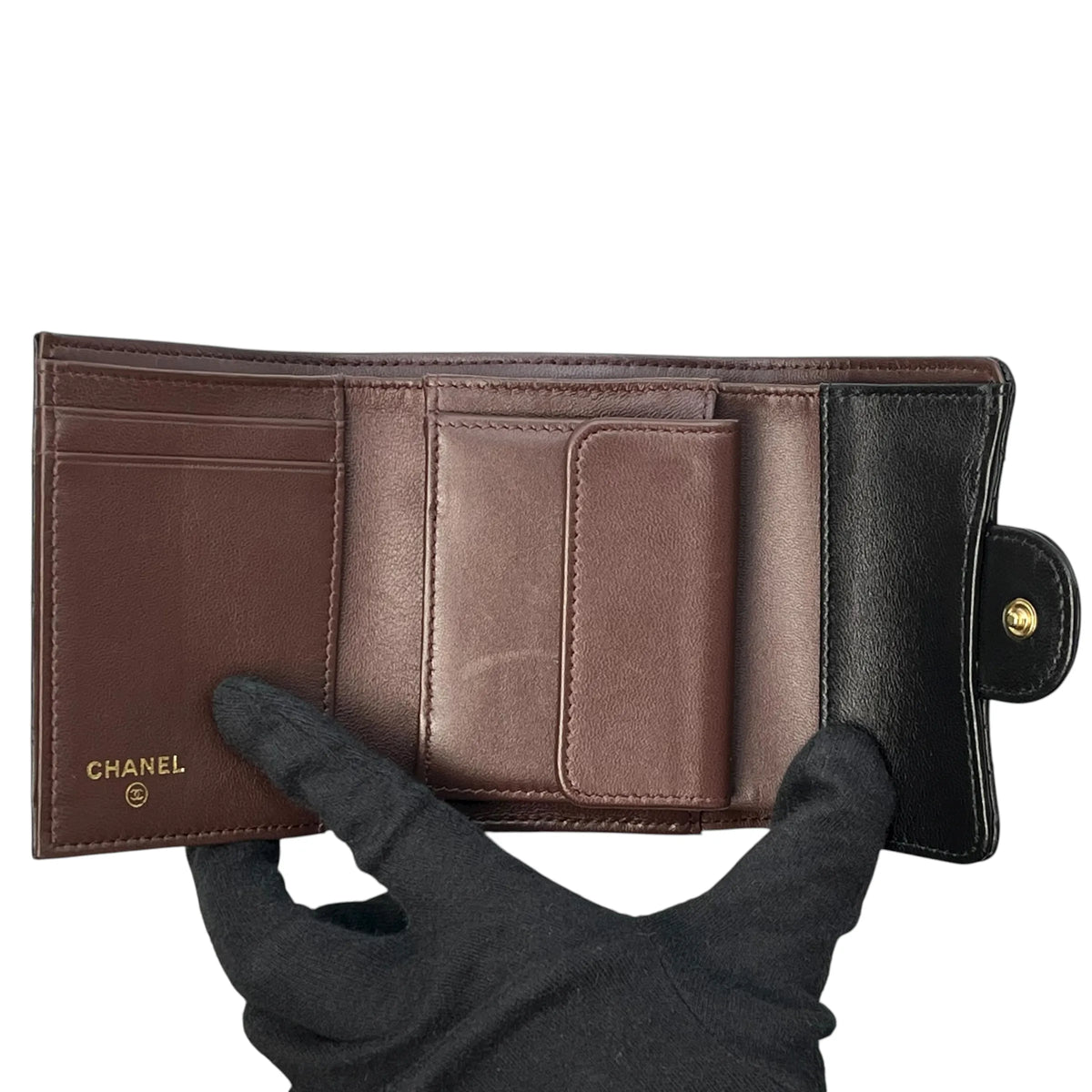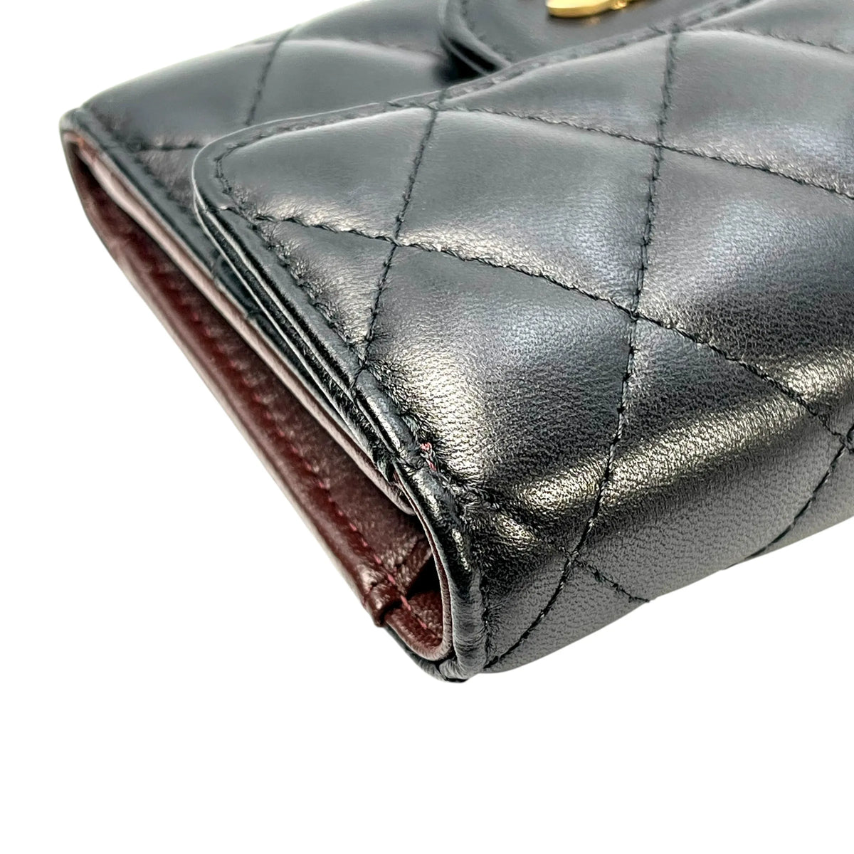 CHANEL マトラッセ クラシック フラップ コンパクトウォレット ラムスキン 三つ折り財布 - ブラック