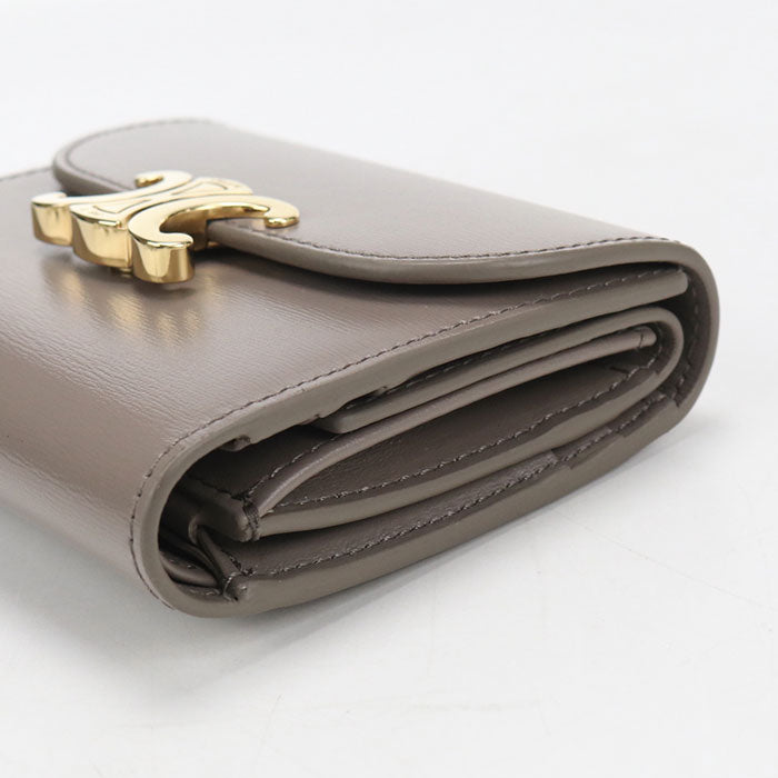 CELINE トリオンフ カーフスキン スモール フラップウォレット 三つ折り財布 コンパクトウォレット - グレー