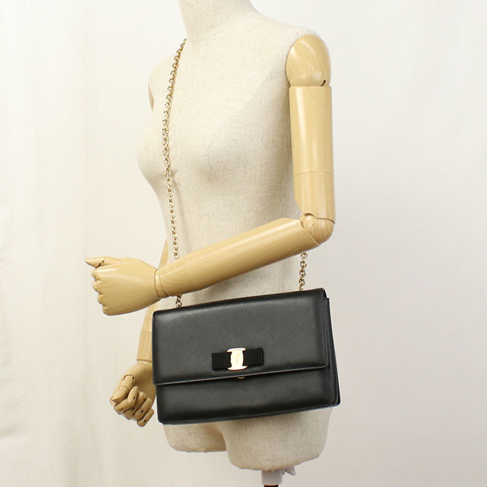 Ferragamo ヴァラ リボン カーフスキン チェーンショルダーバッグ - ブラック